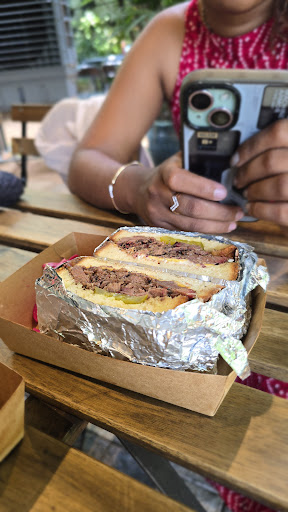 I visited with my friend yesterday around 3 p.m. The place is an elegant outdoor setup in the backyard of the owner's house. I had no idea how or what to order; it was my first time going to a place where brisket is served. The menu was quite simple, pasted like flyers on the glass. I ordered half a pound of beef brisket and a truffle beef sandwich. A couple of minutes later, we got our order. It was simple plating, which I liked. Once the food came, I immediately jumped into the brisket. It was thinly sliced beef, with juices dripping all over, along with some pickled onions. I had no idea what to expect from the first bite, and once I had it, I was absolutely blown away. It was so tender and juicy, kind of like butter; it melts in your mouth once you start chewing it. Flavor-wise, I can say it's a salty, smoky flavor. If you expect something like our traditional beef chilli or beef fry, you'll be disappointed. The brisket is 10+ hours smoked and cooked to perfection, which I request everyone try at least once. Coming to the truffle sandwich, it was also really good, with a hint of sweetness, but I kind of wished it had a bit of heat. The price of each items are also a bit high but considering the time spend to prepare these dishes and there are quite a few restaurants serving these i guess its justified. Overall, it was a really good experience. If you are looking for a good place to try brisket, you can definitely add this place...