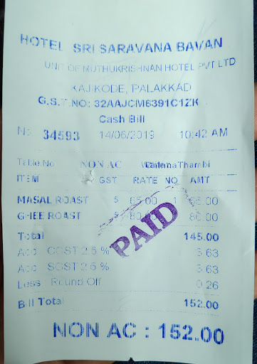 ย ย ย Read moreVery Bad food and bad experiance.. Me & wife ordered a masala dosa & a tea.. First of all wash area is not clean very pathetic.. We are waiting for a long.. They forgot their order and asked again.. Then given masala dosa bt forgot the tea, we ddnt get the tea.. Verybad service.. They dont give water to drink its our duty to take water and glass.. Masala dosa is very bad, we will get better than this from thattukada, my wife eat half of it only even she is very hungry.. After that we again faced that dirty wash area.. Finaly while paying the bill a very serious man is sitting in the billing he facing customers with head weight and he dont know the manners to and how to face customer.. I used to pay through Google pay, suddenly he answered with angry tht there is no google pay only cash and card.. I dnt took purse bt wife took some cash in her hand.. Then paid.. I asked to him that, google pay is not accepted all of your saravana branches?? Suddenly he replied that, "i dnt know abt every branches, here not accepted (เดเดตเดฟเดเต เดเดเตเดเดจเดพเดฃเต เดญเดพเดฏเต เดตเตเดฃเตเดเตเดเดฟเตฝ เดเดดเดฟเดเตเดเดฟเดเตเดเต เดชเตเดฃเด เดฎเดฟเดธเตเดฑเตเดฑเตผ เดเดจเตเดจเต ).. Left from there wife asked me that " this is original saravana bhavan or duplicate?? "๐.. Very Bad experiance and not...
