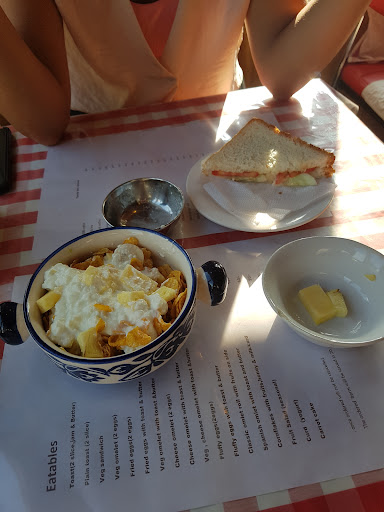 Read moreWe went there for breakfast ! Tea Is ok! Good and big variety, but nothing special! But the breakfast Was not ok, We didn't try the egg-breakfast but We had cornflakes with fruit : half smal cup of cornflakes, 3 pieces of watermelon, 3slices of banana and 7 pomgranade pieces (not joking, like literally!!!) and When the boss said "the normal fruit salat Is big enough" then We order an extra one, but it Was maybe only 3pieces of watermelon more ! So worst breakfast ever for 150 rupies each!! No value for the money We paid! Ah! And opened fruit keept outside the fridge! The personal Was making joke about us, really not kind!!! I would never raccomend...
