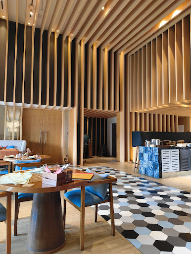 The ambiance is warm and inviting, with a calm and relaxed atmosphere that perfectly complements the luxurious surroundings of the Grand Hyatt. Whether you're dining indoors or enjoying the outdoor seating with a view of the breathtaking backwaters, the setting is simply stunning.