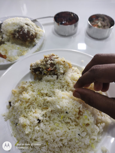 The food was not at all good and the ambience was ok ok And the service was the worst in my life. We were Sitting in ac dining.We have ordered 4 chicken biryani and 5 chapati and two different curry's one is egg and the other one is veg. The most important part they are providing salad on a small bowl which is not enough and if we ask now they will give it after 5 minutes and in that time we have finished our food. And after that we have packed some of the leftover food from there and the chappati was given in an plastic bag without covering with anything it was very un hygienic and we have parceled two currys and they have mixed it and gave to us.and out of the restaurant it is like a pool of bad water because of rain but they can fit anything so that there customers can go easily out of this Worst restaurant. But No they have not been fitted anything there.