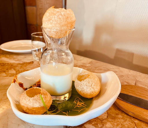 To start our culinary journey, we decided to explore a variety of appetizers. The Sambharam Pani Puri, Kerala Pappadam Chaat, and pazhampori Chaat were bursting with flavors and provided a unique twist to traditional street food. The InjiPuli Chicken Wings were a tangy delight, while the Rasam Soup and Venad Paal Konj warmed our hearts.