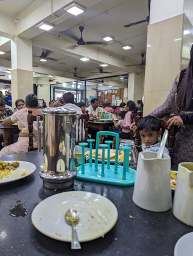 Went to the restaurant for lunch, but it was incredibly busy with all the seats occupied. While the ambiance was average, it had a good dining capacity. I decided to order a meal, that had white rice, some side dishes, pickles, and papadam. It turned out to be a satisfying choice, and I also tried their fish fry and lime juice. Everything I ordered was enjoyable, with the meal priced at 60 rs, the fish fry at 105 rs for tuna, and the lime juice at 25 rs. However, the downside was the slow service; it felt like the restaurant could benefit from hiring more staff, given its bustling nature. On a positive note, the washroom and wash area were clean, and the restaurant was easily accessible, although only street parking was available.