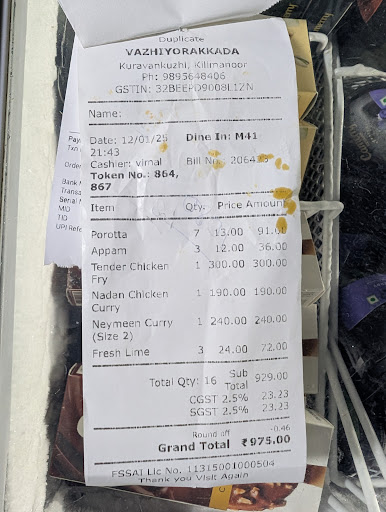 Vazhiyora Kada offers decent traditional Kerala food, though spiciness might not suit everyone. The place is crowded and has limited seating, so expect a wait. Billing accuracy needs improvement, so it's best to double-check before paying. A good stop for a quick meal, but with room for better service and...