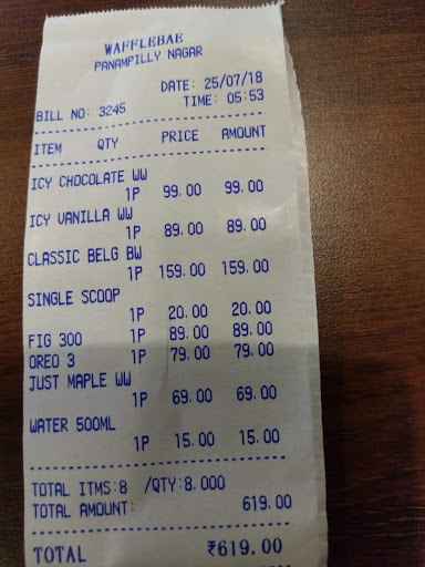 Read moreA big shout out for Waffle Bae Panampilly nagar... We went to panampilly nagar as kids wanted to go 'somewhere'.... Was heading to panampilly nagar and on Zomato spotted Waffle Bae and went there straight.. A small cozy place with simple and chic interiors and lighting.. We ordered Icy chocolate, Icy Vanilla , Classic Belgian and Just maple Waffles... Kids ordered Oreo Shake and Chickoo shake (in the bill by mistake they entered fig)... The waffles were mind blowing.. I would say Icy vanilla tasted the best followed by Classic Belgian, Icy chocolate and Just maple... All of them were good... The shakes didn't meet my expectations... Being used to the thick shakes this one was just so so... Chickoo had a bit of rawness to it... Oreo was more like a chocolate shake... But waffles were...