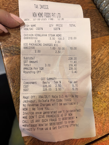 Read moreToday I went for the first and the last time to this Sreekariyam wow momo outlet .. the person handling the counter Anoop did not give me the bill .. later on asking he gave but the number mentioned on the bill was not mine ..on asking he told that he was busy taking online order so he didn't take my number .. though after argument he gave me another bill .. but he was really rude ... and also we dine in but he changed rs 5 for...