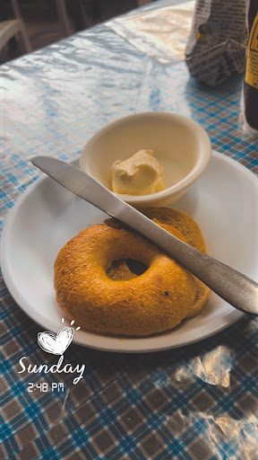 We also enjoyed the Italian bagel with cream cheese and the freshly baked garlic bread—both were delicious and well-crafted. The hot chocolate was decent, though it didn’t stand out like the rest of the menu.
