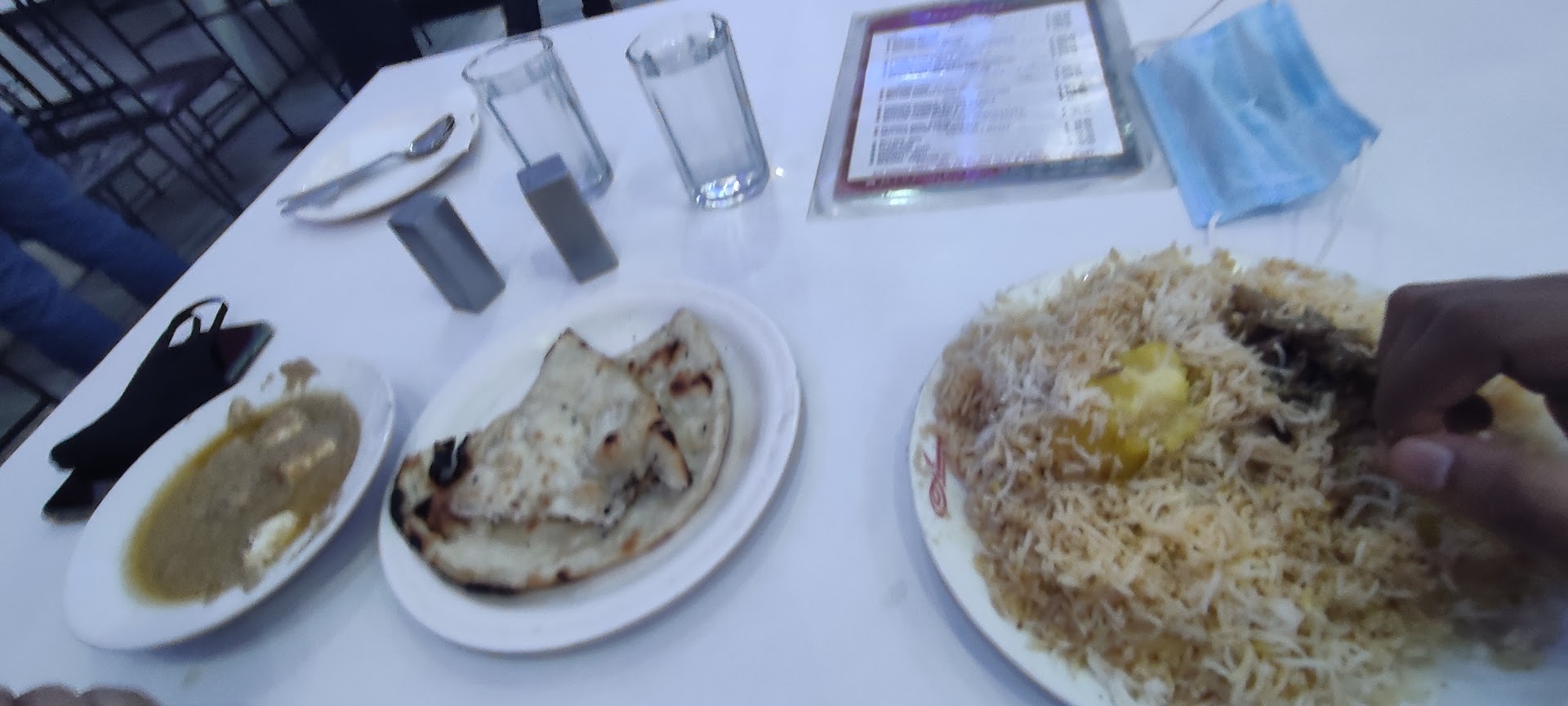 1.Just after visiting all the waiter behaved as if they could not see us, after 5 minutes one attended us, we wanted one veg biriyani and one non-veg. Being such a big brand they had no veg options even after having in their menu chart they informed we don't have veg,then waiter informed they can provide paneer curry.we took time to decide as if we should leave the place and go to nizam or arselan or have paneer with naan as we had veg biriyani and mutton biriyani in our mind. The waiter misbehaved when we asked him to wait He was like "lena h toh lo nei toh katlo" So we opted one paneer curry one butter naan and one mutton biriyani.