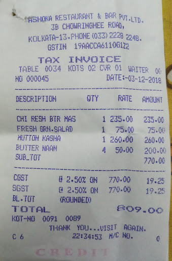 Today after finishing some work at esplanade decided to try one of the old restaurants of dharmatala area, I had Anarkali in my mind but looking at its deserted and dirty look changed my mind and entered Ashoka. Though it is mainly a bar and all the people who were present in the ground floor then were drinking but we entered it to have proper food and we were not disappointed. the staffs were well behaved and service was relatively quick, everything was served within 15 mins. ordered masala kulchas, chicken reshmi butter masala, chana masala and alu dum, all very basic items , nothing fancy. I was very surprised to get food of such high quality at a bar, all the items were just excellent. Pocket pinch was very reasonable, cost for 3 was rs-950.Had a surprisingly good experience here and planning to visit it again sometimes to try their...