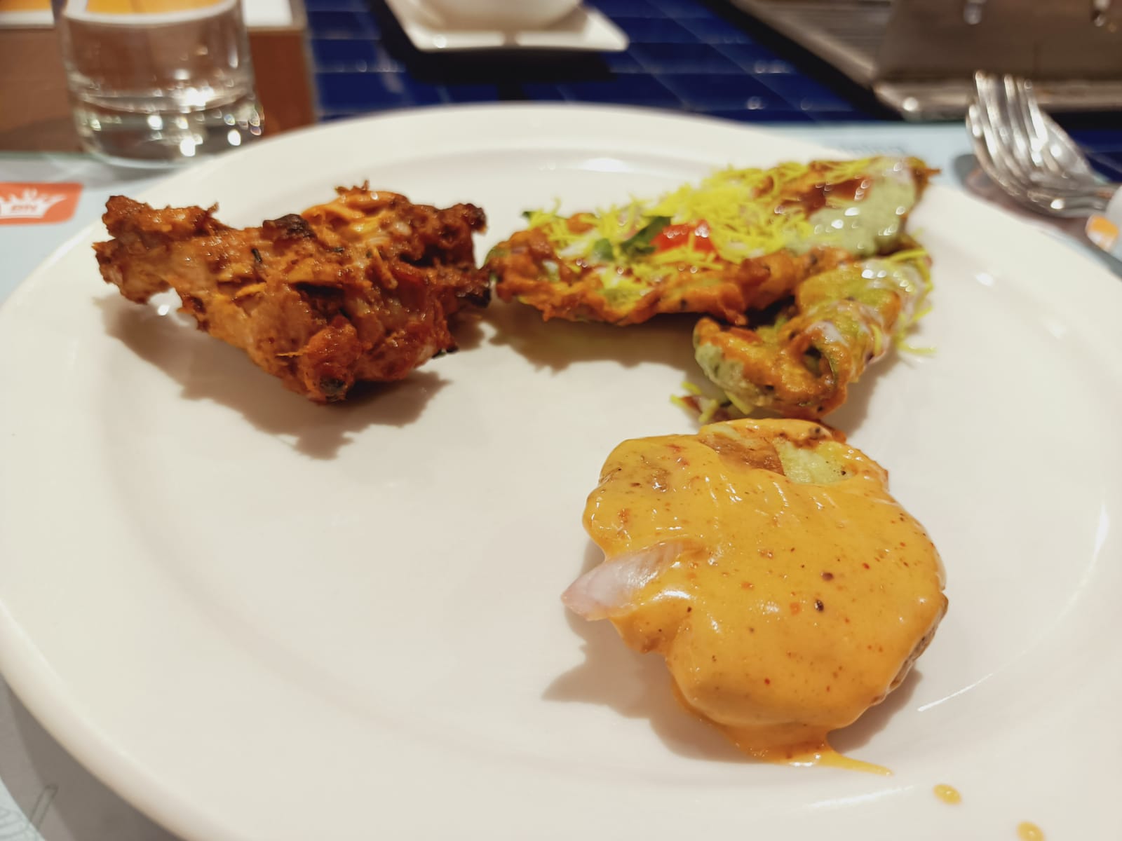 Starters I loved- Pineapple grilled Mushroom And paneer Chicken kalmi kebab Chicken tangri kebab Prawn grilled Fish grilled Cajun spice potato(Signature dish) Main course- Rajasthani laal maas(mutton tasted extraordinary) Chicken biriyani Kerala style fish curry Prawn malaicurry Egg curry Soup PLAIN RICE Various SALADS