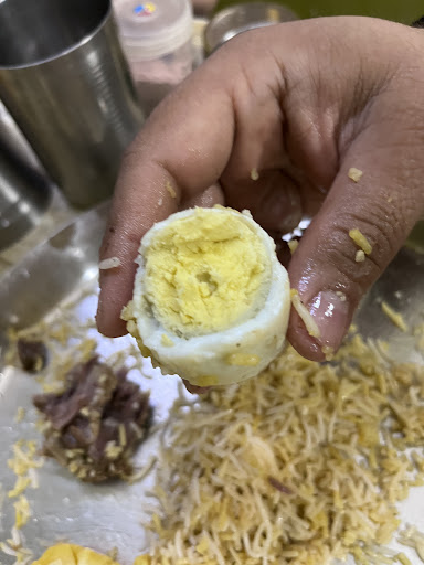 The biryani was drenched in overpowering synthetic scent, making it nearly impossible to eat. The potato was undercooked and clearly of poor quality, and shockingly, the egg served with the biryani was completely rotten. My brother accidentally swallowed some and is now suffering from a severe stomach upset.