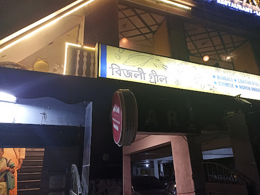 A flight of 10-15 steps lancing through the walls pasted with hand drawn stickers led us to the cozy interior of a much sought-after restaurant for decades – Bijoli Grill. We were at their Southern Avenue branch overlooking Najrul Mancha on the opposite.