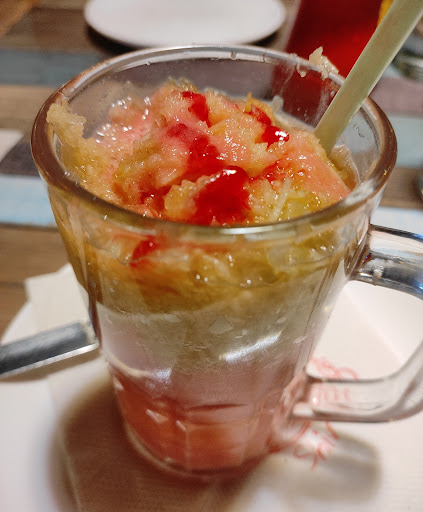 Fruit punch - I was expecting something else when I ordered fruit punch, like orangish kinda drink with some tangy flavours but it was totally different from what I imagined or had in other places. It wasnt bad in taste but dint like it much because of the excess sweetness. They added a whole grated apple on top with rooh hafza. Those who have a sweet tooth can go for it otherwise it's a big NO.