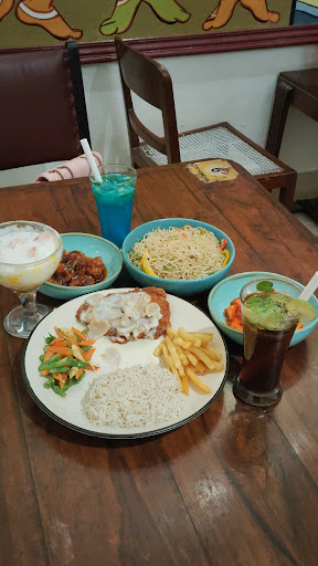 Café Kolkata 32 is located next to Niranjan Sadan and Bijoygarh College in Jadavpur. It is right in the heart of a warm throbbing community of young Kolkatans. Facing an open maidan with a fountain, the café comes to its visitors as truly a breath of fresh air. Wide range of coffee, cutting chai, Darjeeling and Assam tea and coolers… fries, pizzas… pastas…old Cabin style chicken cutlets and fish fries, it is truly a fabulous gastronomic experience. A trip to an ambience and hors d’oeuvre that embraces the past while appreciating the evolving globally informed taste buds. Check in to savour an environment with old café style wooden furniture, paintings on the wall that will remind you of the world of Nabarun Bhattacharyya and the Fyatarus, done especially for this café by the maverick genius Amitava Malakar. There is a book shelf from where you can pick up both Bengali and English books. The range includes intellectual collection of essays, travel books as well as pulp fiction and graphic novels. But of course, the focus is invariably on food. They can proudly claim to add at least one major taste to Kolkata’s café offerings: THE GREEN CHILI SPECIALS. Available in pork, chicken, fish and vegetarian choices, green chili specials have become a ‘HOT’ topic of conversation among Kolkata’s connoisseurs. It has become their signature dish. All thanks to their Master Chef, this is just the right tongue tingling heat of the chili that does not take your mind away from the succulent flavours of the marinated meat, fish or vegetables. It is a super hit both at the café and online. If chili is super hot, can coolers be far behind? Of course, not. Taste our fizzy spicy specials, our super popular mojitos, or dreamy creamy coffees. For those who like it hot, they have cappuccino, mocha, Americano and the lot. They also have the delicate flavor of Darjeeling or the robust taste of Assam. Our Cutting Chai is a true “Bombaiya maal,Bhai!” And you can slurp it all down with the final taste of Avalanche, an indescribable combination of brownie ice cream and strawberry syrup. A select choice is available is on Swiggy Zomato and Hungry Top. So log on or hop over to us. They are offeing a flat 20% discount and 5% extra if you give a check in on Facebook! Coming to the dishes I had: Veg Noodles - Rs 100 Fish Teriyaki - Rs 275 Sweet & Sour Babycorn - Rs 145 Tutti Fruity - Rs 195 Grilled Chicken with Mushroom Sauce,Saute Vegetables,French Fries and Herbed Rice - Rs 270 Cold Coffee with Ice Cream- Rs 165 Strawberry Mohito - Rs 135 32 Special Tropical Cooler - Rs 135 Masala Cold Drink - Rs 80 Average cost for two...