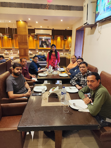 We went for a family lunch on Saturday, 22nd Dec. My brother and sister in law were here on a short vacation and they had made an online booking.The lady at the desk was not able to find the relevant reservations, but quickly escorted us upstairs to the buffet section. It is a spacious room and the tables were neatly laid. We were the only guests it seemed! The starters arrived quite promptly and arranged on the mini tandoors in the middle of every table-a very innovative touch! There was a variety of non veg kebabs on offer, the chicken reshmi was quite tasty although the fish was bland. The prawns were really small and the mutton sheekh kebab was spicy.The veg items were good-paneer, potatoes mushroom and pineapple, all on skewers ! By this time the buffet spread was on the table.We had to ask for the soup as the cauldron was empty!The veg items were all good - fried rice, noodles au gratin, but the non veg ones did not look half as appealing! The portions on offer were really small and appeared like left overs from previous days , like there were 8 pieces of mutton in the rogan josh! The rotis were not as soft as they should be but the kulcha was ! The best part of the meal was reserved for the last though!! The dessert section was absolutely delectable!! They brought in a ginger bread house to add to the festive spirit! Every pastry and cheesecake and tart was delicious ! The gajar halwa was also good! The ice cream counter had only the regular flavours but the embellishments were nice! The staff was friendly and helpful and the service prompt! It was a nice experience overall and I would definitely recommend it. However,the location is a bit of a put off and the exterior of the building is not flattering at all ! Anyway, at the end of the day, good...