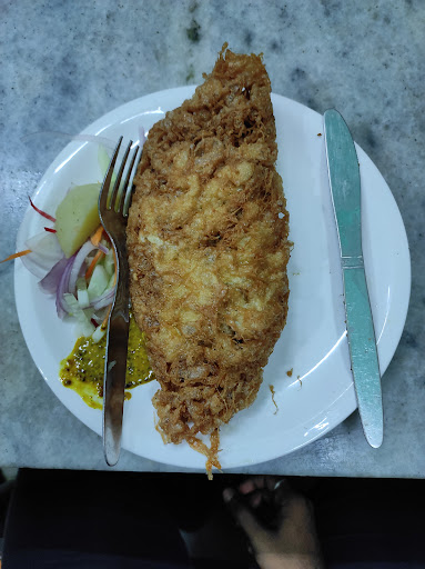 Read moreMunched over this almost century old iconic Bengali Cabin Style restaurant this evening. From white marbel embellished dinning tables to small wooden cabins, they still hold the old calcutta charm. We have ordered their very famous egg moghlai parota, which is very tasty as expected, posing a think crust & soft texture accompanied with dry aloo dam & salad. Later we have ordered their Fish pakoda (4pc in a plate) & Fish batter fry, both of them tasted very identical & pretty avarage (except their shape & size) though the fish used inside is fresh & of good quality. Service is decent & staffs are cordial. You may try once for experiencing by own self. The busy kitchen proves it's popularity.
