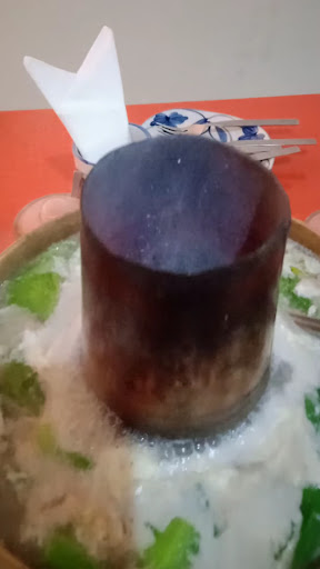 • Chimney Soup: This is the signature dish, a half-cooked soup with a burning coal inside the soup pot. The soup consists of chicken, pork, fish, prawn, egg drop, and veggies.