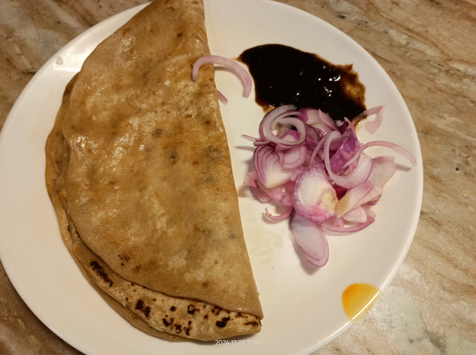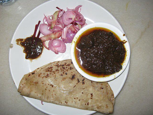 Coming straight away to the food ..We ordered a plate of Kosha Mangso (Meat) and a plate of Chicken Masala . Both the dishes came along with 2 paranthas and medium quantity's of Onion and Cucumber Salad. We also ordered one EGG DEVIL.