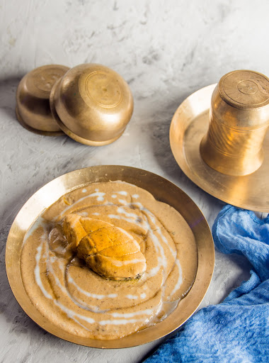 Nababi ilish, a huge piece of hilsa submerged in a white smooth creamy gravy.The gravy was a combination of cashew,melon seeds,poppy seeds paste,and of course with a generous amount of fresh cream.