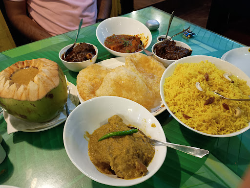 The restaurant's signature dish is the Kosha Mangsho (spicy mutton curry), which has earned it widespread fame. The dish is slow-cooked with a blend of aromatic spices, making it tender and flavorful, perfectly paired with hot, soft luchis (deep-fried bread) or steamed rice. Kosha Kosha is also well-known for its diverse menu, which includes other Bengali delicacies such as Shorshe Ilish (Hilsa fish in mustard sauce), Chingri Malai Curry (prawns cooked in a rich coconut gravy), and Macher Jhol (fish curry). The restaurant caters to all kinds of tastes, offering both vegetarian and non-vegetarian options, all prepared with the finest quality ingredients.