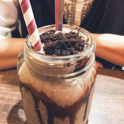 Now, let's talk about the drinks. My cappuccino, unfortunately, was a bit of a letdown. It was like a strong, burly lumberjack in a cup - too much espresso, not enough milk and foam. My mum's brownie shake, on the other hand, was a sweet, chocolaty delight. It was like a hug in a glass, comforting and delicious.