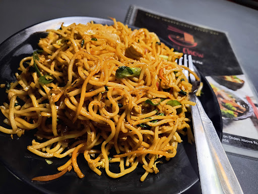 Chilli Garlic Chicken Noodles @ Rs.100 (4/5) Thick noodles, tasty, spicy, exact amount of sauces, just the perfect chili garlic noodles with ample chicken chunks.