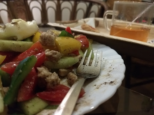 food:- the food was average and the tea was very refreshing. i was sad when i saw the salad they served was in a plate which made it hard to have it (it would have been better if it was in a bowl instead of a plate.)
