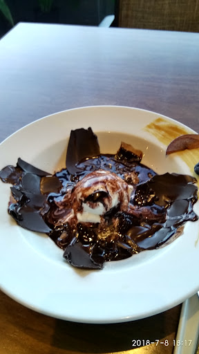 Chocolate Ball on fire - The show stopper is this signature dessert- The Chocolate Ball on Fire and it's literally on fire! The flambé is done with Cointreau poured on a huge ball of smooth glazing chocolate. As the chocolate melts away, you find the dry fruits and nuts, chocolate crumbs, chocolate brownie, vanilla ice cream and caramel hidden inside the ball. Heavenly!!!!! Must try!! (It's quite sumptuous even for 2)