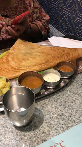 We were really hungry so we ordered one masala dosa and one cheese dosa . The masala dosa this time was served with the masala aloo outside the dosa in a bowl which is a fun take on the traditional dish. Cheese dosa felt a dicey concept , however cheese and dosa together absolute harmony it was . The chutneys are delicious. The waiters came to our table to refill the chutneys twice . Had a wonderful experience again, can't find a...