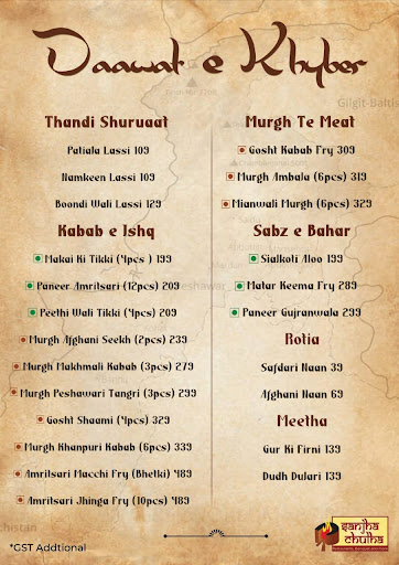 Paneer Gujranwala Matar Keema Fry Murgh Afghani Seekh Murgh Peshawari Tangri Afghani Naan Dudh...