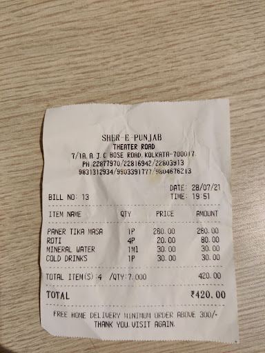 Read moreThis is my third time that i went to sher e punjab Theatre Road outlet..i would like to mention that before it used to a small restaurant with 2-3 tables..but now they have expand their restaurant and niw it becomes restaurant cum cafe..where you can get cuisines like north indian, mughlai, chinese etc..and now they added in their menu cafe items also like sandwiches, burgers,coffees, rolls etc.. And now comes to food, we have ordered chicken tandoori and mixed chowmein.. Chicken Tandoori was very good in taste but this time tandoori size is little bit small compare to that we had tried earlier..And mixed chowmein was also very good in taste there is lots of chicken, egg, and prawns were there but the quantity was little bit less...that we had eaten earlier.. Overall good experience...there food quality was very very good..but should improve and focus on little bit...
