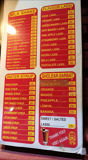 Read moreTasty and healthy shakes are available here . Both milk and water based shakes and sherbet can be tried here. The drinks quality is too good and the best part is that it is prepared LIVE infront of you. Varieties of drinks that are available here are milkshake, sherbet, ghol based sherbet, water based sherbet, milk based sherbet and last but not the least LASSI with a lot's of flavour. A very special arrangements are also available here is that of 'Bhaang' along with a Shiv Ji temple to offer Puja and drink...