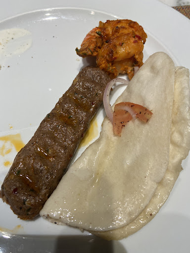 MOUTH-WATERING MAIN COURSE- Samak salalaha - (chargrilled bhetki)-absolutely fabulous; Dijaj Harra kebab- ( chargrilled chicken with harissa sauce)- soft and lightly hot Kebab meshwi (grilled minced lamb) for the main course.