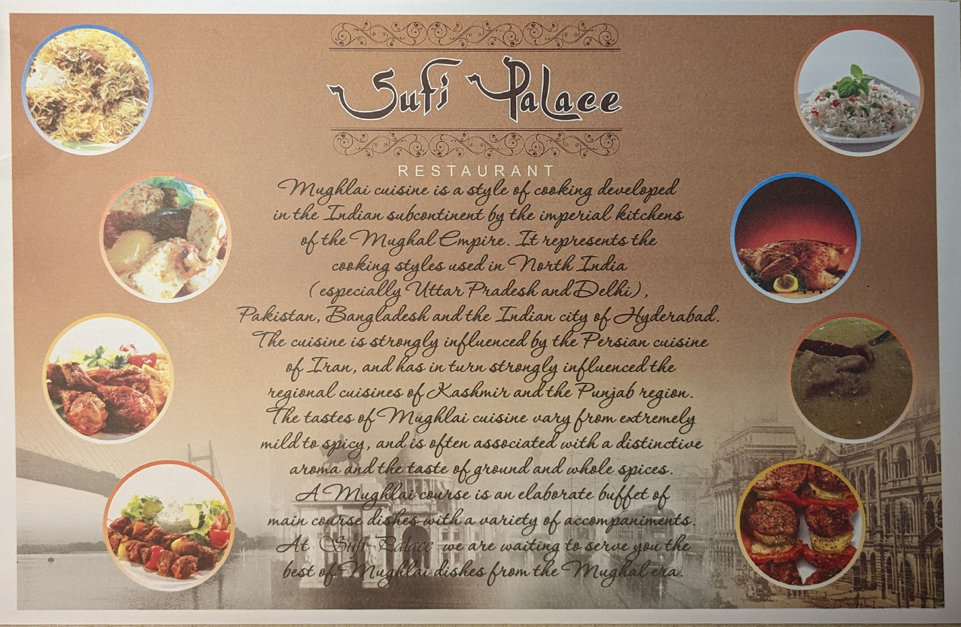 Read moreI recently had the pleasure of dining at Sufi Palace Restaurant in Kolkata, and I must say it was an exceptional experience. The restaurant has a warm and inviting ambiance, with tasteful decor and comfortable seating arrangements. The staff was friendly and attentive, adding to the overall pleasant atmosphere.