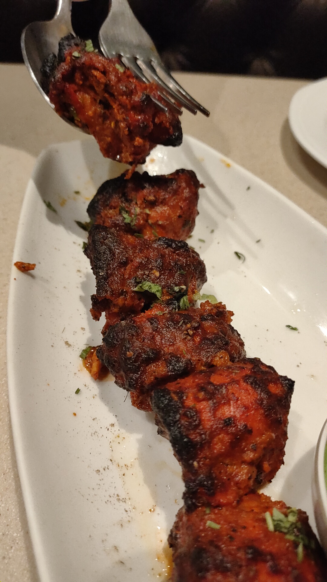 Next, I sampled the Chicken Achari Kebab, and I must say it was a standout dish. The chicken was tender and infused with tangy and spicy flavors, reminiscent of achaar (pickle). The kebabs were expertly marinated, resulting in a delicious combination of textures and tastes. It was a true treat for my taste buds.