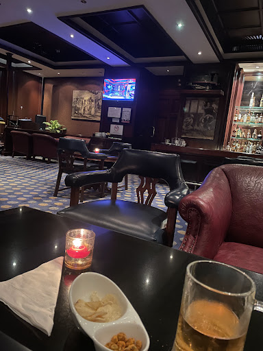 Cocktails, wine & whiskeys offered in a train-themed hotel bar with classy, dark-wood decor.