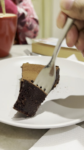 During our visit, we indulged in a delightful combination: a cup of coffee and a dense chocolate cake. Both were simply delicious!