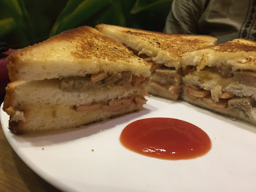 So, we ordered the following: Chicken Sausage Salami and Egg : The Chicken sausage(2 pieces) , salami(2pieces) and an egg poach were served with mashed potato, some veggies and a roasted tomato. The taste was not up to the mark. For me, it was overpriced in compare to the quantity served and also some other cafes. Pork Ham Salami and Egg : Same remark for this item also. Its really overpriced. Chicken Salami and Cheese Grilled Sandwich : Finally, these sandwiches were our saviour for the day. The sandwiches were perfectly grilled with good amount of chicken and cheese. It was damn good in taste.