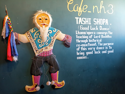 The white wall and dark brown tables and chairs make the interior design a bright spaious room, moreover, the eye-catching pictures full of Tibetan buddhism elements on the wall liven the whole space up. It's a clean and charming cafe, however, the service we experienced today is not as good as the interior design.