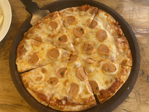 The pizzas, iced tea and softy ice cream are highly recommended. The prices were very reasonable and portions quite generous. Three pizzas will comfortably suffice for a party of four hungry travellers. They arrived at our table in 5 minutes!