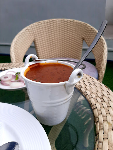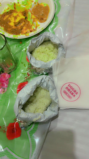 The Dogra Dhaba has made considerable new investments in its brand and it shows. The Dogra in its old haunt next to GESMO was overshadowed by the more famous restaurant brand. It was a modest eatery. The new Dogra is dhaba in name only, at distinctly non-dhaba prices. The interiors are pleasant and beautifully designed in blue and white. The seating is on two floors. A smaller indoor seating on the ground floor with low tables and cushions on low platforms by big windows for Indian families who feel comfortable sitting cross-legged, and more formal table and chair seating. A beautiful iron staircase leads up to the second floor dining area - an indoor area with beautiful light streaming in through large glass windows, and an outdoor terrace area with faux grass and pretty beige faux cane chairs and tables. I preferred the latter, as the day was pleasant and the sun wasn't out. I felt like having rajmah and roti, and what better place than the Dogra, which specializes in North Indian food. The presentation of the food is impressive; the staff well trained, they even wear a uniform; the crockery is new and minimalist. The rajmah came in a beautiful white, ceramic bucket, with an accompaniment of sliced onion and green chilly. The roti came in a small bread basket lined with tin foil. That was the most impressive part. The rajmah was dhaba-style thick and spicy, but lacking the tanginess of tomatoes, which have become expensive of late. The beans, however, were of indistinct quality. Needless to say, I've had better rajmah elsewhere. It was good to see several customers, in this rather lean tourist season in Leh. One wishes the best for this...
