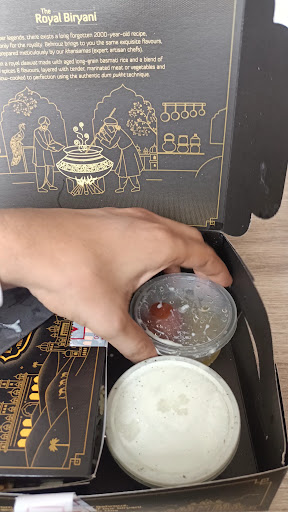 But now lets come to taste and packing part, packing is very good it comes in a fancy palace theme, with small mint flavor curd and a sweet dish(gulab jamun) for reference i will be attaching pictures below.