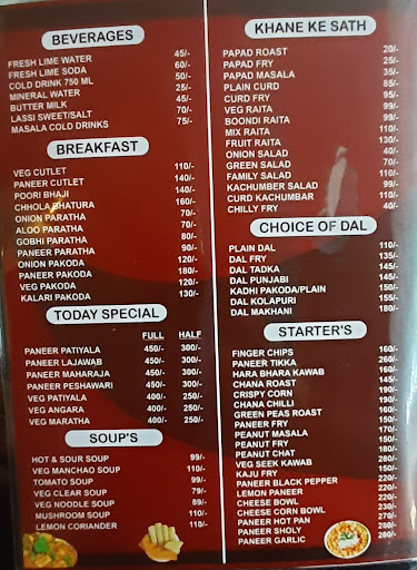 Food is expensive priced in comparison of 5 star restaurant rates. Food quality is very poor .I repeat..Vry poor and unhygienic. Oily preparation with No pickle nor salad is provided with your food order. They use oil with melted butter in Butter roti and Naan preparation. Non-veg is awful as the cooking staff undercooks the meat. Veg options are nothing but covered with paneer grated on top of every dish served to hide the appearance of the dish ordered. (Menu photos are attached for your reference) Tip - Bigger the menu poorer the food quality !!
