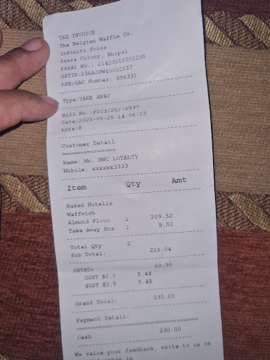 Read moreCheese cake was not available and staff is uncourteous. Rude staff is throughout outlets at Bhopal may it be this one or at DB City. Belgian Waffle should focus on training staff for politeness and customer service. Also water was leaking from Air Conditioner, which we would not at all expect when we are paying 200 bucks for two peice of bread and chocolate sauce. People visiting should consider these...