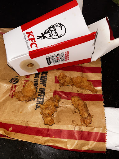This is my very first time to visit kfc , i very wonder what they have compare to road side fried chicken , on very thing on this branch they said Ac is not working so they provide only ac as in fan mode , ok after that we took a table the table remains mess they dont even try to clean the table even if you ask for that so atmospere and service are worst from the above experience ok after the 30 mins the food is ready , when iam took a first bite with expectation it really worst compare to road side fried chicken , food is halfly cooked ( instead of we well cooked with out AC 🙂) and the batter is not blend with the flesh .. oil not get properly filtered afer the fry it remains sticky on fingers . i dont know why peoples falls for this ok that's there opinion .. , i really dont know what in that finger licking good is that oil ? even you dont provide a stuff like a gravy 😄 , sorry KFC our taste buds not evolve to getting the taste of Oil ... so definetly not a finger...