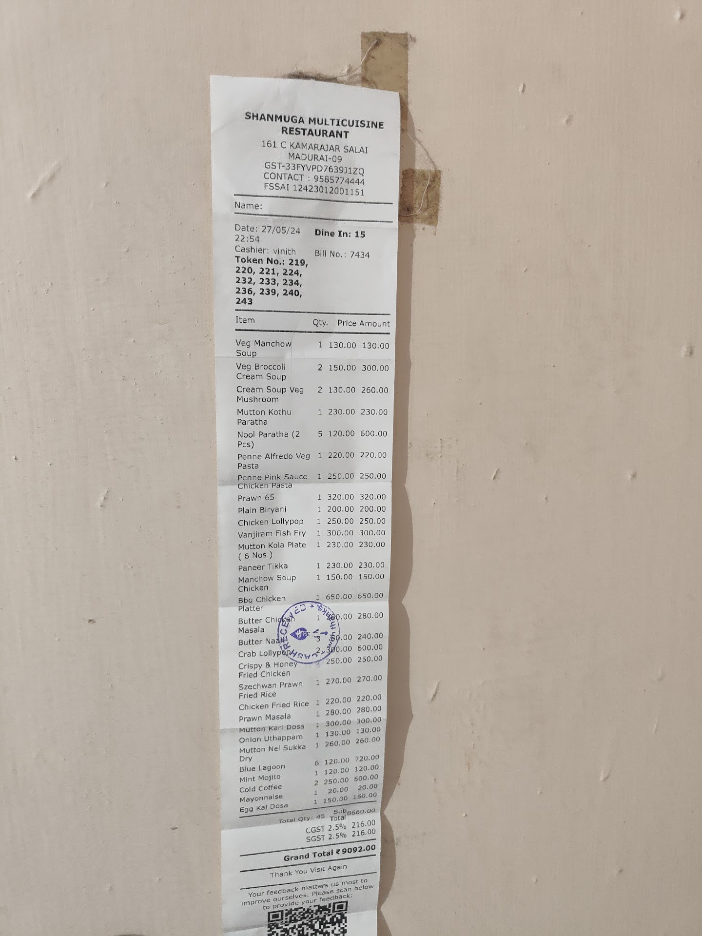 I recently visited shanmuga multi cuisine restaurant with my sister after seeing Insta food blogger reviews but it was totally disappointed for us. Ambiance was pleasant upon entry, the washroom was a lettable down with its unpleasant odor and we got mosquito bites under the table...and the table was not cleaned properly bcz who serve food he is same person cleaning the table with his hand without any gloves or proper cleaning kit it shows their hygenic standard.