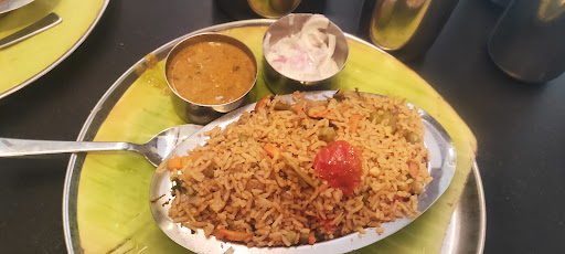Was searching for some Veg hotel who provides Meals between 11:30 - 12 noon. Found this hotel with good feedback & rating. Also provides lunch from 11:30 am. So went there which is on the main road in between Madurai Railway Station and Bus Terminus. Normal middle class hotel. One restroom was there. We were the only couples for lunch around 11:45 am. Service was slow and lethargic. Only one type of meal was there as Elai South Indian sapadu so we ordered. Banana leaf in round Steel plate with all dishes in cups (payasam, sambar, Rasam, 2 poriyal, vatta kolumbu, kootu, Curd + appalam) were given. Unlimited rice. Extra dishes if required are given. Buttermilk is additional. No chapati / pori, raita, ice cream or beeda in our plate meals as shown in photos of other customers. Average taste of all the dishes. Sambar was watery. Rest of the dishes was okayish. Bill Rs. 200 for 2 people meals. We ate in 3 different veg hotels during our stay. I would rate this hotel in 3rd place. Their seating place was good but near hand wash it was untidy. Water on floor and lots of used tissue papers were on floor with over flowing dustbin. Beedi shop next to this hotel had good...