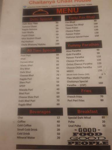 Good Recipes: Sev Puri and Chole Bhature, chaat items are good.