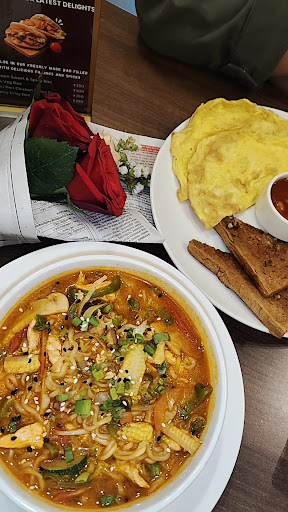 Chicken Sandwich is quite good and covered with molten & grilled cheese on top. Pizza is made from fresh dough and served hot. We had tried their Peri Peri Paneer Pizza. Cottage Cheese Steak served with rice & Pepper sauce was delicious as well. Chilli Chicken Gravy with rice was the only dish which was average as it was served in a bowl and curry is too much for small amount of served rice. Staff is friendly and polite. The premises are clean and also have clean washrooms.