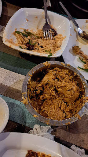 The manager who took our order bought chicken dum biryani and some kind of noodles. I am attaching the pics. The biryani was not biryani, it was left over chicken mixed with some rice. The noodles were all broken and both the dishes tasted same. We could not eat that food. It was so tasteless and bland. They gave food showing that they were doing a favor on us.